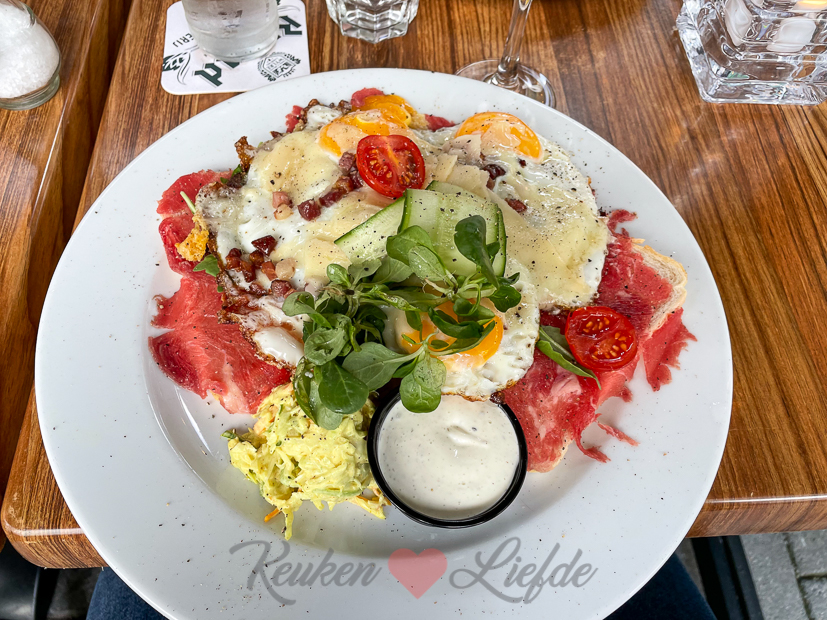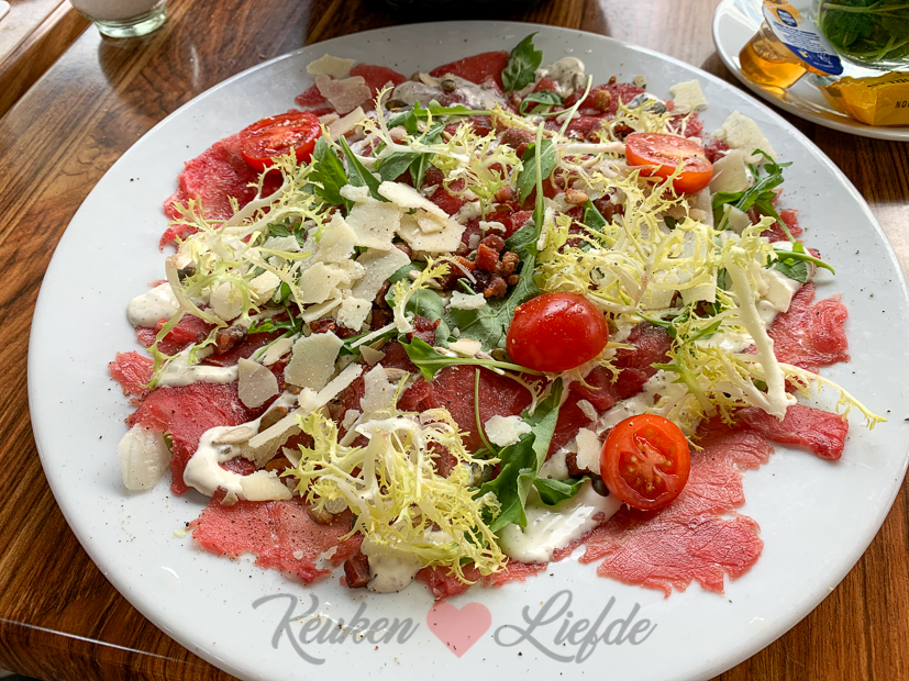 - Uitsmijter Christoffel met carpaccio, spekjes en Parmezaanse kaas voor Johan