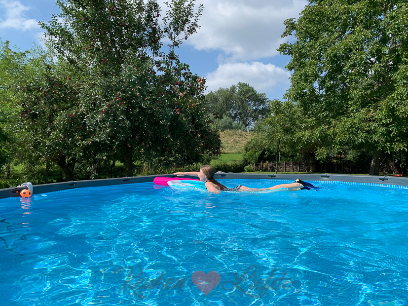 Johan is weer aan het werk en ik zit thuis een dagje op kantoor. ’s Middags komt er een vriendinnetje van Ella-Marie spelen. Het is mooi weer dus ze kunnen nog lekker zwemmen!