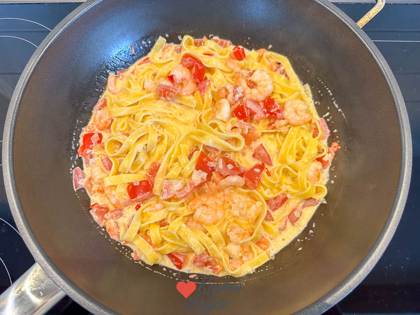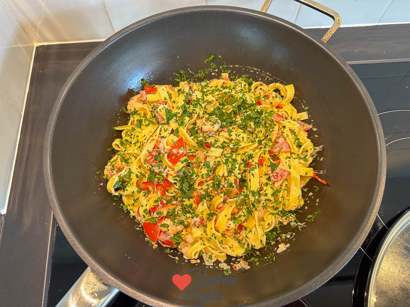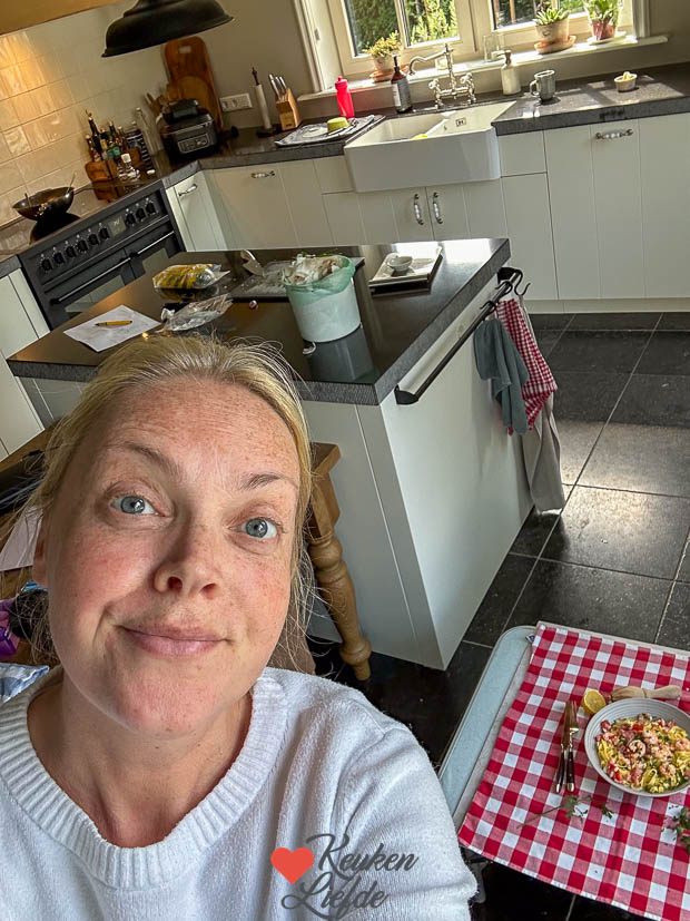 Vandaag voel ik me weer iets beter. Joehoe! Ik werk ’s ochtends op kantoor en daarna ga ik de keuken in om weer een recept voor KeukenLiefde te maken wat meteen ons avondeten is. Ik maak tagliatelle met garnalen in roomsaus. Ook dit recept komt deze week nog online. Ik hoop vanaf nu weer langzaam een voorraad recepten op te bouwen zodat ik weer een beetje speling krijg.
