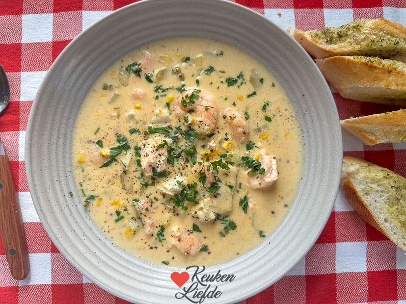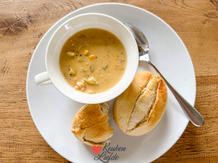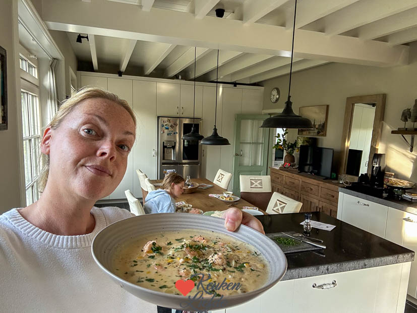 Ik maak ’s avonds een pan vis chowder. Het recept staat in mijn nieuwe kookboek ‘Makkelijke Wereldgerechten’ die je hier alvast kunt reserveren. Hij valt dan begin september bij jou op de deurmat!