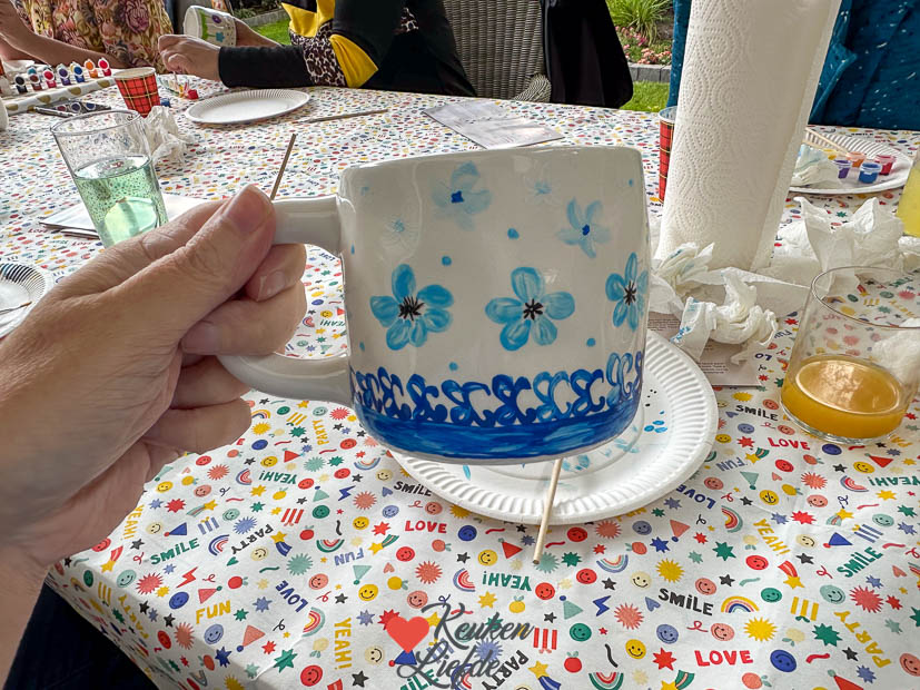 Ik rijd ’s middags naar Wijk bij Duurstede voor nichtjesdag. Bij een van mijn nichtjes thuis gingen we mokken beschilderen en sloten daarna de middag af met een lekker hapje en drankje. Zo leuk en gezellig! Mocht het je leuk lijken om ook een keer je eigen mok te beschilderen. Kijk dan even hier. Toen ik thuiskwam kon ik meteen een hapje avondeten meeprikken want Johan had frikandelsalon gemaakt op verzoek van de tiener. Ook werden de boodschappen weer thuisbezorgd voor mijn kookdagen.
