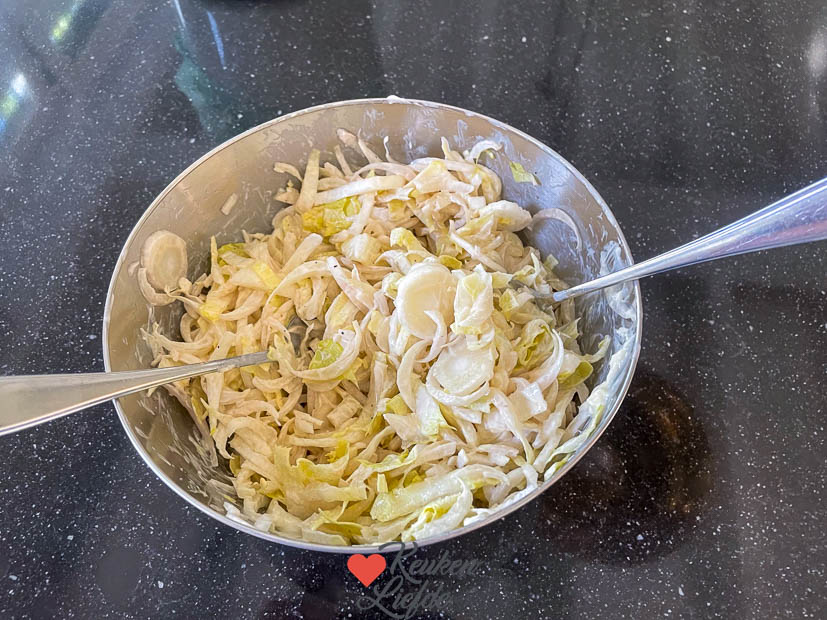 De vakantie is nu echt voorbij, want ook Ella-Marie is weer naar school. Eindelijk stond er vandaag weer eens een kookdag op de planning waar ik echt zin in had. Jammer genoeg was ik gisteravond beroerd geworden en na een nacht woelen en draaien werd ik ’s ochtends nog beroerder wakker. Het liefst was ik de hele dag in bed gebleven maar dat zat er niet in. Ik moest hoognodig achter de computer en de keuken in voor KeukenLiefde. Nadat ik het kijkje in de keuken online had gezet en één recept had gemaakt en op de foto had gezet was ik er klaar mee. Ik was rillerig, had keelpijn en mega hoofdpijn en wilde alleen maar naar bed.
