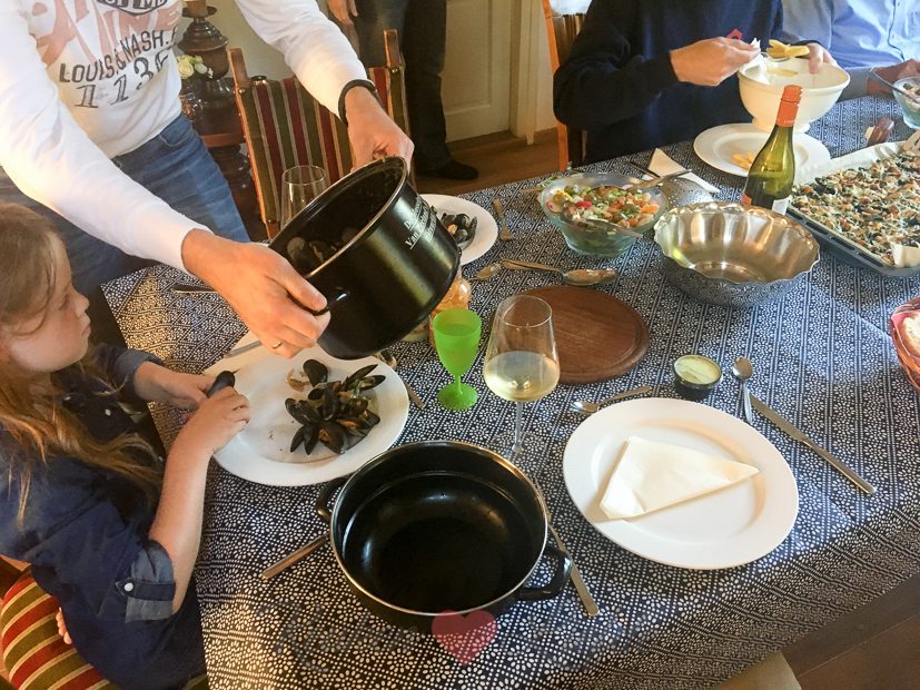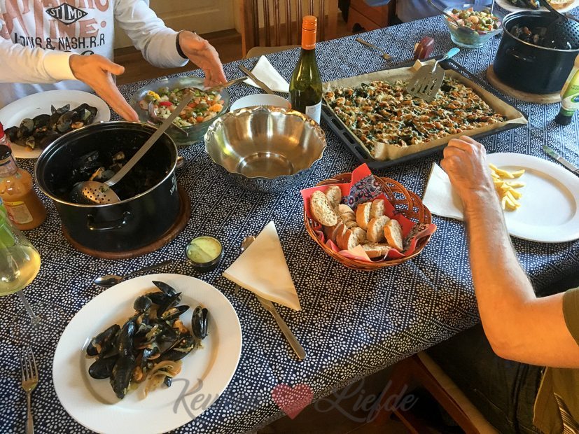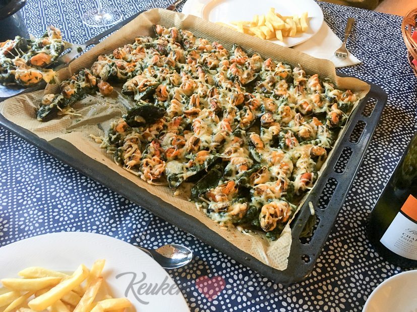 Mosselen eten bij mijn ouders. Zoals altijd maken ze de mosselen op twee manieren klaar: klassiek gekookt met mosselgroenten en gegratineerd van het bakblik met spinazie a la creme en kaas. Veel te veel gegeten, maar het was weer zó lekker!