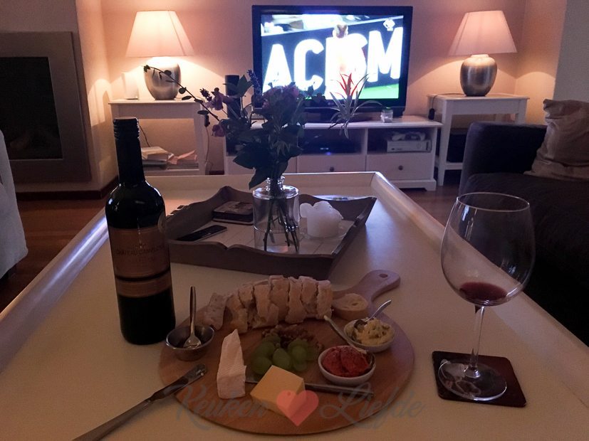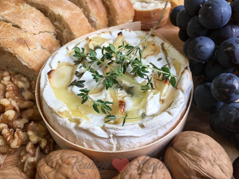 Het is mooi weer ’s avonds en we eten lekker buiten in de tuin. Ik heb niet zoveel zin om lang in de keuken te staan, dus ik gooi een camembert in de oven en serveer die met stokbrood, walnoten en druiven. Smullen!