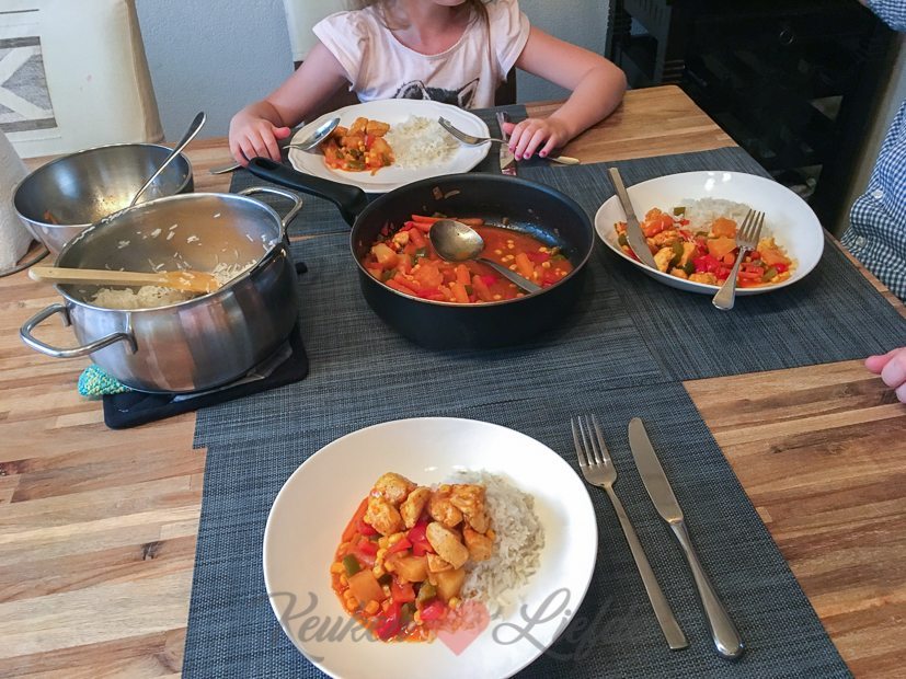 Op verzoek van Ella-Marie eten we ’s avonds kip Hawaï. Ze is er dol op! Ik maak meteen een nieuwe kookvideo van het recept en die ga ik komende zaterdag met je delen.
