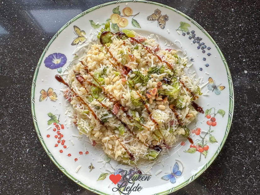 ’s Avonds maak ik risotto met spekjes en broccoli. Makkelijk om te maken want je hebt maar één pan nodig en superlekker.
