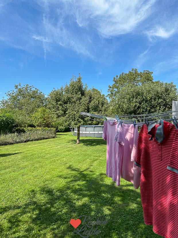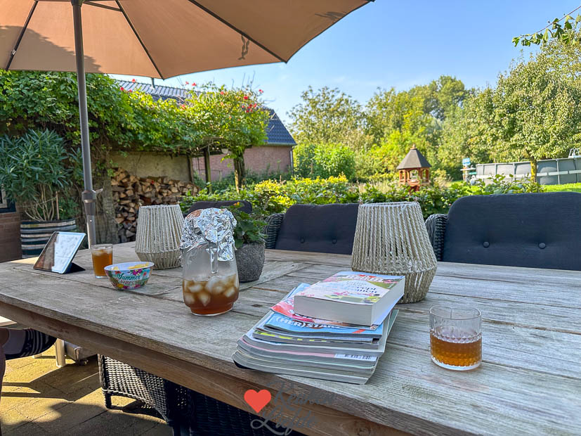 Het is weer een prachtige zomerdag vandaag. Johan en Ella-Marie zijn de deur uit. Ik werk ’s ochtends op kantoor en daarna ga ik de keuken in. Ik maakte onder andere pistachepasta waar ik het recept al van deelde. Tussendoor draai ik wasjes en hang die lekker buiten op. Zal straks wel weer wennen zijn als alle was binnen moet hangen. Blegh!
