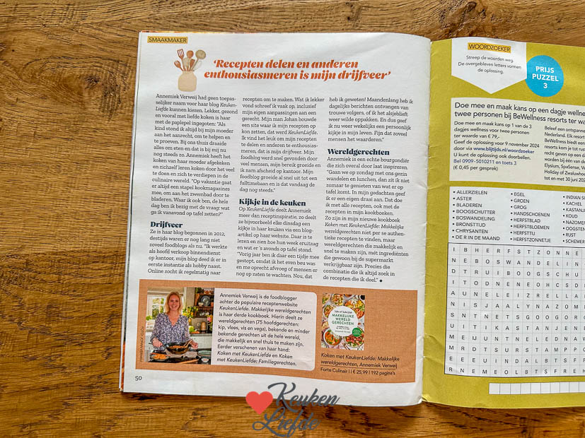 Het weekend zit er weer op, een nieuwe week is begonnen. Ik krijg de najaars editie van het Blijtijds magazine binnen waar we met een recept uit ons nieuwe kookboek en interview instaan. Je ontvangt dit magazine als bijlage bij een programmagids als Televizier en Avrobode.