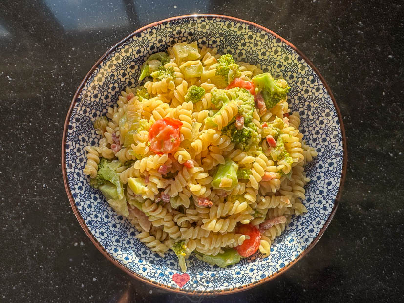 Vrijdag ging er een snelle pasta op tafel: kaassaus, broccoli en spekjes. Het recept staat niet op KeukenLiefde want ik maakte hem met een zakje kaassaus, maar hier schrijf ik het recept voor je uit — lekker simpel en doordeweeks-proof: