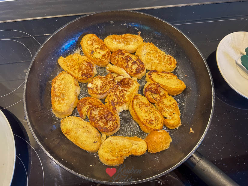 - Bak ui, knoflook en spekreepjes in een hapjespan tot het spek licht krokant is.