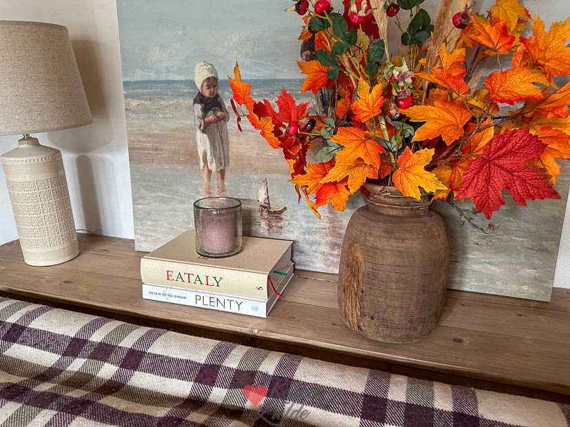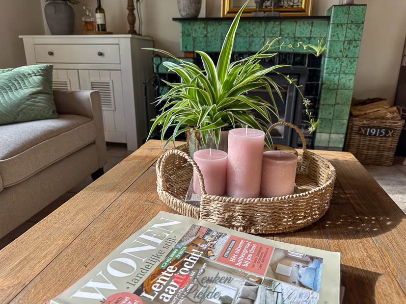 Zondagochtend sliepen we lekker uit en bakte ik wentelteefjes van oud stokbrood uit de vriezer — zó lekker. De rest van de dag deden we het rustig aan. Binnen rommelde ik met herfstdecoratie: wat verkleurde bladeren en kaarsen doen wonderen. Ik houd niet van regen, maar wél van het binnen extra gezellig maken met kaarsjes. Aan het einde van de middag wandelden Ella en ik een rondje met Nacho, terwijl Johan het avondeten maakte: kippensoep met kaastortellini.