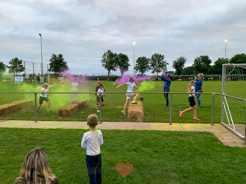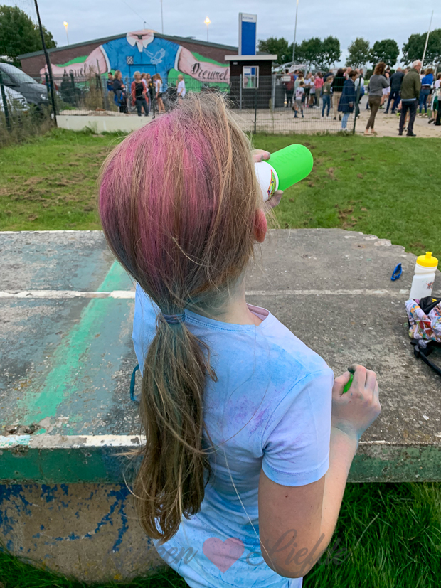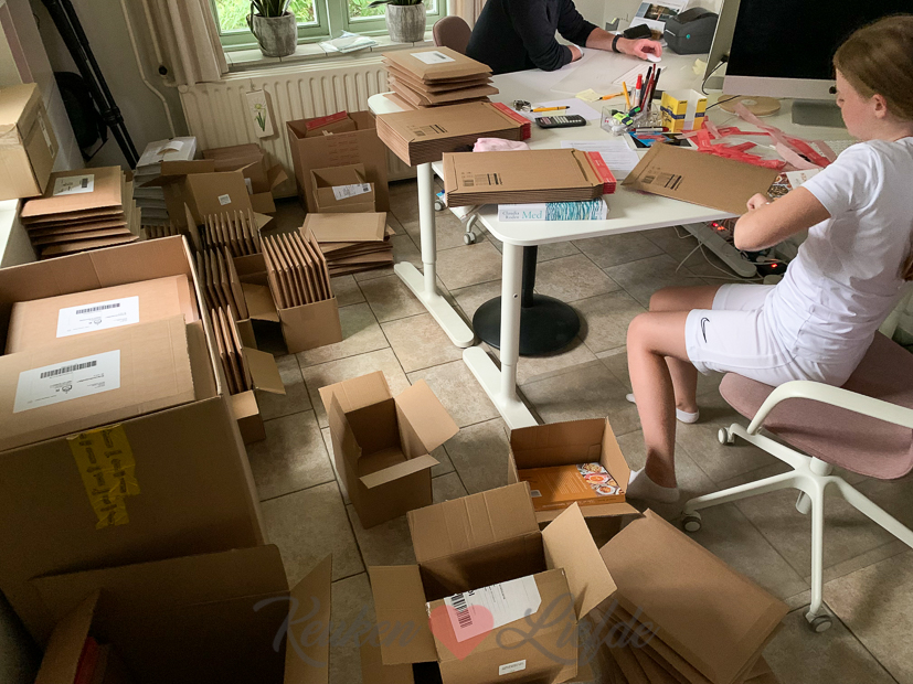 Als Ella ’s middags uit school komt eten we samen een broodje. Daarna maak ik nog even wat werkdingen af op kantoor en dan ga ik met Ella op pad. Vanavond heeft Ella een sponsorloop/color obstacle run voor de voetbalclub en het advies was om een wit t-shirt aan te trekken. Die hebben we niet en dus moeten we op t-shirtjacht. Omdat mijn auto erg vies is besluit ik eerst nog even door de wasstraat te rijden en te tanken. Maar natuurlijk wilde het klepje van de tank niet open. Omdat we vlak bij mijn schoonouders zijn besluit ik bij ze langs te rijden. Johan zijn vader kan altijd alles maken en ja hoor, een kwartier later was het tankklepje weer open en gesmeerd! Snel terug naar het tankstation om te tanken en daarna door de wasstraat. Daarna met gierende banden op pad voor het witte t-shirt. We slaagden snel bij de Zeeman en konden weer naar huis. Het was inmiddels al vijf uur geweest en er was geen tijd meer om te koken. Friet it is! Daarna moest Ella zich omkleden en op de fiets naar de voetbalclub. Johan, ik en Johan zijn ouders gingen iets later ook naar de voetbalclub om ze aan te moedigen. Het was een kleurrijke bedoeling! Eenmaal weer thuis moesten de mouwen worden opgestroopt want morgen moeten alle boekbestellingen van de afgelopen tijd de deur uit. Vrijdag komt ons kookboek uit en mag het geleverd worden! Johan zijn ouders kwamen nog even een kop koffie bij ons drinken en stonden niet veel later ook in te pakken. Een paar uur later waren alle boeken ingepakt en klaar om morgen opgehaald te worden.