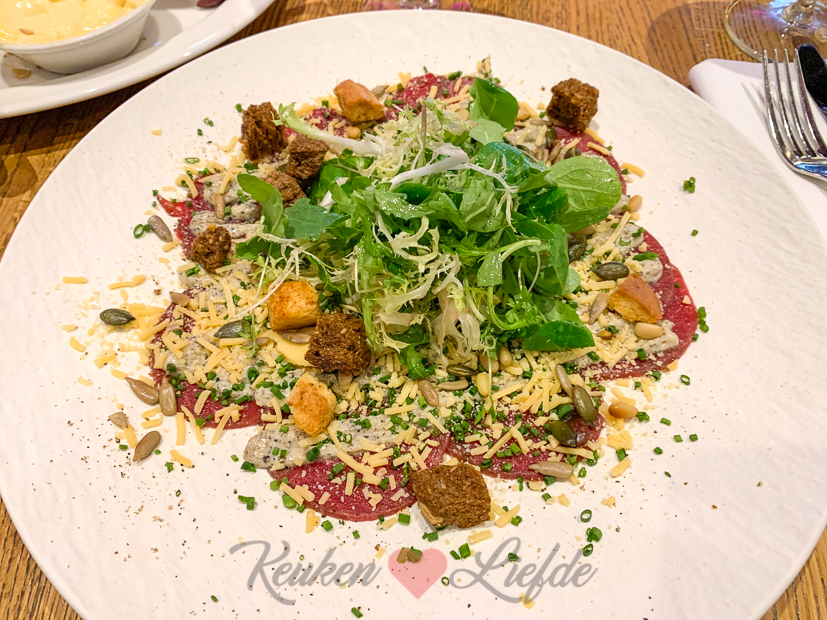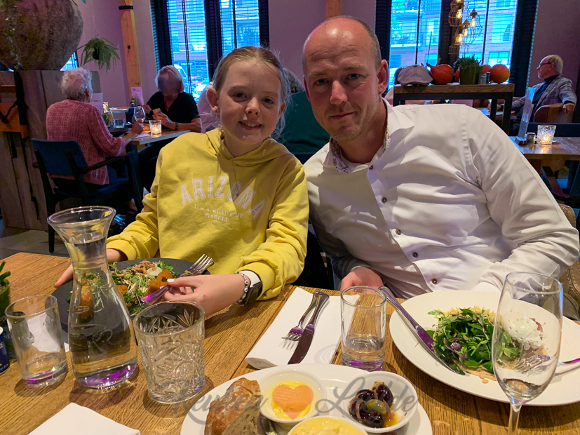 Ik moet Nacho om half negen ’s ochtends bij de trimsalon brengen en ben al vroeg de deur uit. Onderweg naar huis haal ik nog even boodschappen want ik heb vandaag een kookdag. Ik ben niet vooruit te branden en moet flink moed verzamelen maar ben uiteindelijk maar gewoon begonnen. Ik heb net twee recepten gemaakt en gefotografeerd als ik een belletje krijg dat Nacho weer opgehaald kan worden. Als Nacho weer is opgehaald maak ik nog een derde recept dat ook meteen de laatste is van vandaag. Ik had eigenlijk zes recepten willen maken maar ja, morgen weer een dag! De gerechten die ik heb gemaakt worden afgedekt en gaan de koelkast in. Vanavond gaan we lekker met z’n drieën uit eten om te vieren dat ons kookboek uit is! We gaan heel weinig uit eten (we vinden het leuker om af en toe buiten de deur te lunchen) maar nu hebben we iets te vieren en Aan tafel bij Jan (in ons eigen durpke!) is een van onze favoriete plekjes. We kunnen er lopend of op de fiets naartoe, het is er gezellig, de bediening is goed en het eten is superlekker!