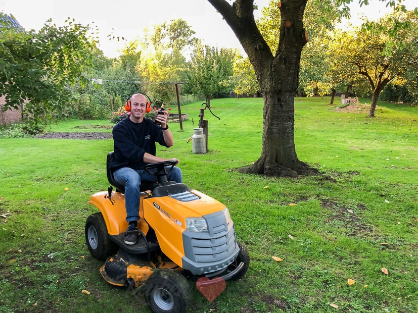 Johan maait ’s avonds het gras en maakt het zichzelf zo aangenaam mogelijk. ? Laat dat gras maar groeien, laat dat gras maar groeien… ?