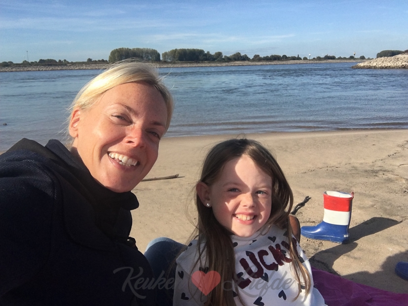 Het is een prachtige dag en Ella-Marie en ik lopen ’s middags even naar het waalstrand achter ons huis.