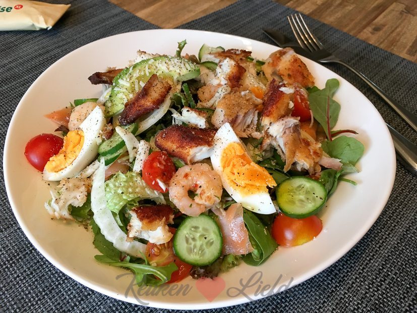 Maaltijdsalade met vis! Kan ik elke dag wel eten, maaltijdsalades.
