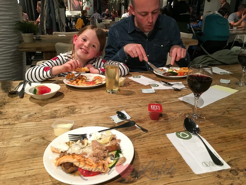 De lunch was geslaagd en iedereen heeft ervan gesmuld. De caravan stond het hele weekend op onze naam dus na de lunch gingen we met z’n drieën het park in!