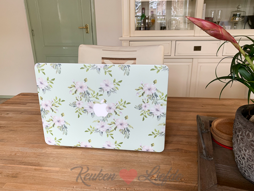 Van Caseapp mocht ik onlangs een telefoonhoes of laptopskin uitzoeken. Ik ging voor deze gebloemde, groene laptopskin: een zelfklevende sticker die je laptop beschermd tegen krassen en die na het verwijderen geen lijmresten achterlaat. Vandaag wordt hij thuisbezorgd en ik plak hem direct op mijn laptop. Kijk hoe gezellig dat staat! Kneuterigheid ten top. Ik hou ervan. 🙂