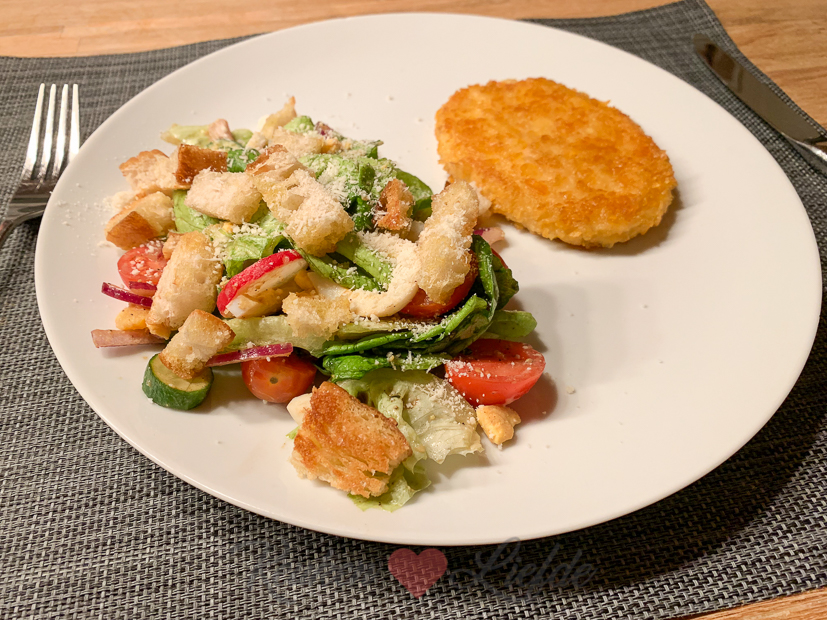 - Salade met gebakken kaasschnitzel voor Johan en mij