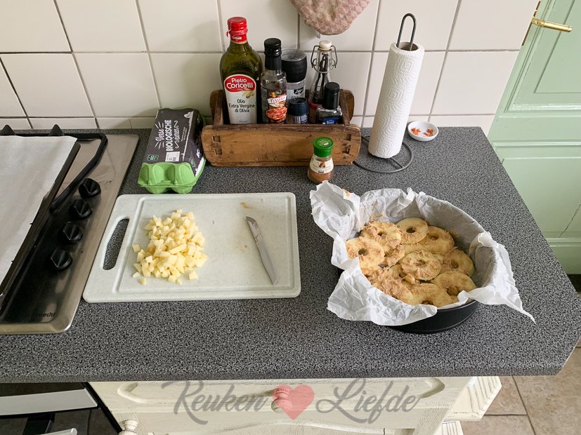 Johan en Ella-Marie gaan ’s middags samen shoppen en lunchen in Tiel. Ik blijf thuis om te werken en ik bak deze omgekeerde appeltaart. Het recept ga ik met je delen!