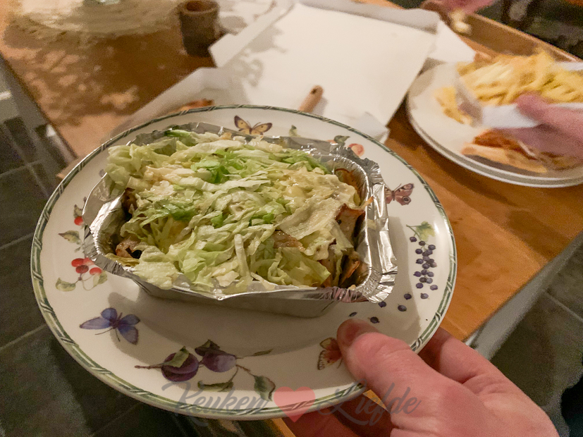 Halverwege de ochtend komt de postbezorger een grote doos bezorgen. Erin vind ik een mooie felicitatiekaart van de schoonfamilie en een grote bos bloemen, voor de 12,5 jarige trouwdag van Johan en mij. NEE! In onze gedeelde agenda stond dat dat pas maandag is. Oeps! 😱Niet dat we wilde plannen hadden aangezien bijna alles nog dicht zit, maar toch. Zonder deze lieve attentie was dit jubileum bijna aan onze neus voorbij gegaan. Nadat Johan en ik elkaar (telefonisch) hebben gefeliciteerd en ik de bloemen op een vaas met water heb gezet ga ik nog even aan het werk. We hadden niks bijzonders in huis voor het avondeten en omdat niemand zin had om te koken genoten we ’s avonds van een feestelijk thuisbezorgdiner. Pizza en een frietje voor El en mij en kapsalon voor manlief. Het was een dag om nooit te vergeten.