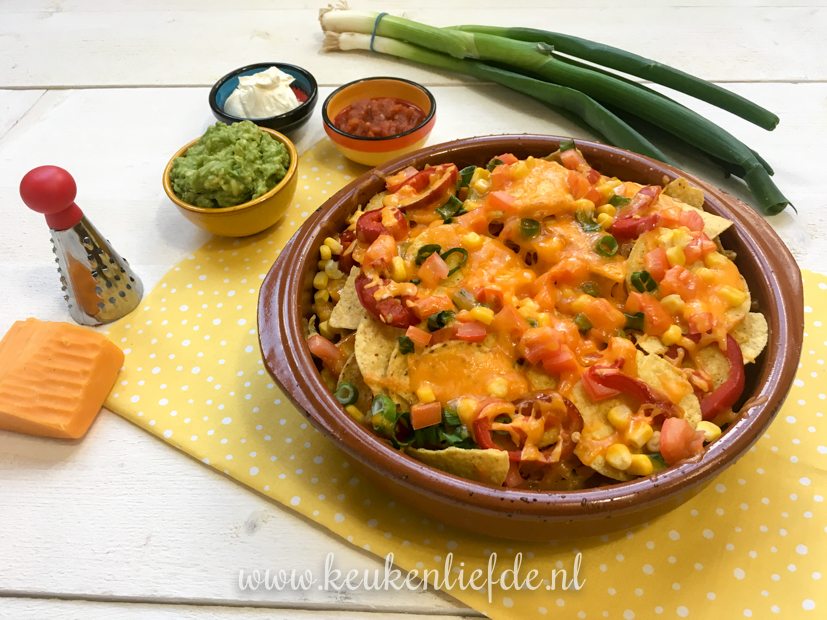 Na het cheesecakegeluk maak ik ook nog nachos met kaas uit de oven geserveerd met drie lekkere dips.