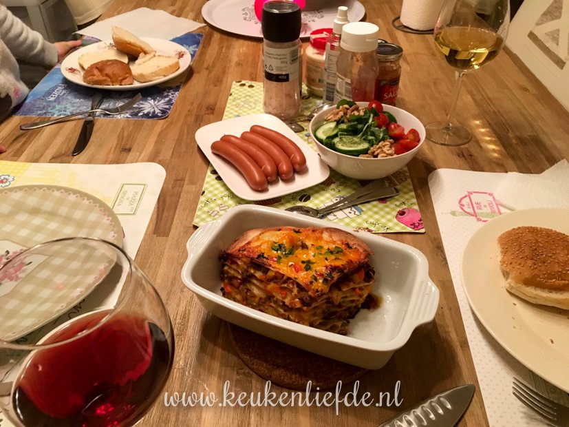 ’s Avonds hoef ik niet te koken, want er is nog een stuk Mexicaanse wraptaart over en erbij eten we broodje knakworst. Haha, wat een combi. Maar het smaakt prima.