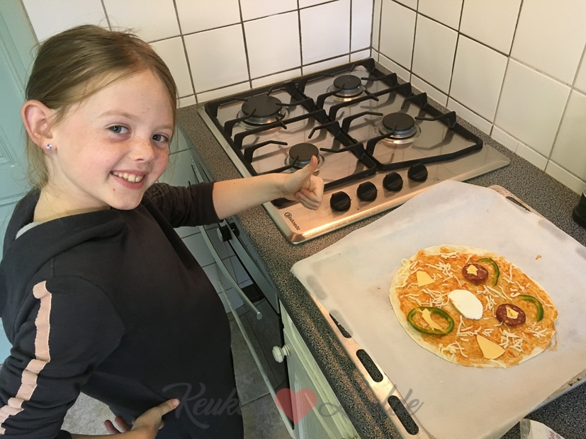 Ella heeft zin in een wrappizza en wilt hem graag helemaal zelf maken. Vooruit dan.