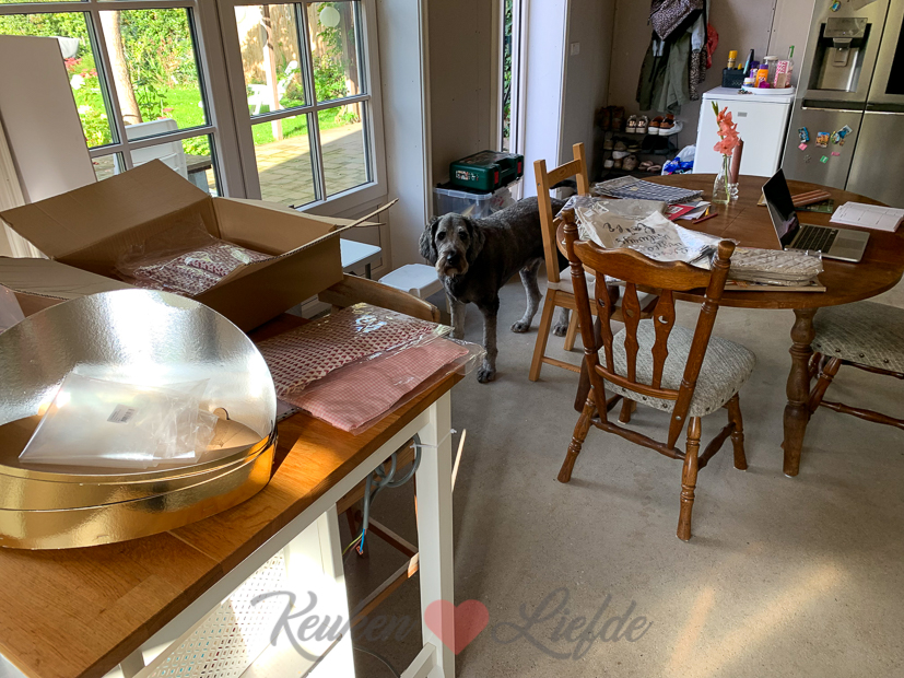 Johan en Ella-Marie zijn de deur uit voor werk en school en ik werk thuis. In de ochtend zit ik een paar uurtjes op kantoor, daarna pak ik de camera erbij om foto’s te maken van de producten die we inkochten voor de webshop (nog niet alle producten staan in de shop). Verder was ik creatief met inpakpapier. Johan zijn moeder is jarig en ’s avonds gaan we bij ze eten. Het was nog prachtig nazomerweer dus de barbecue ging aan voor broodje hamburger.