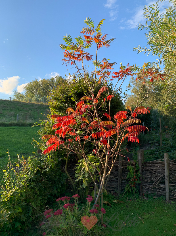 - Het blad van de fluweelboom kleurt prachtig rood in de herfst!
