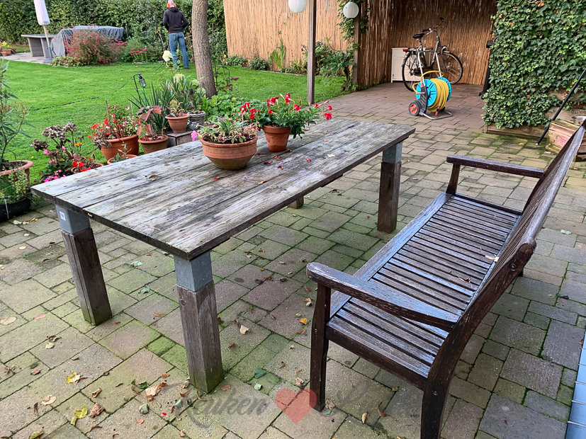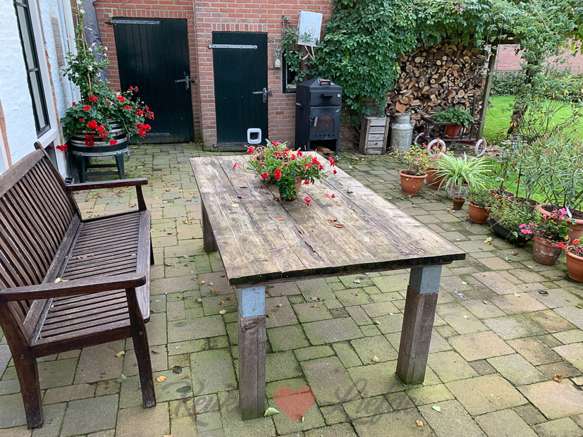 - De witte tuinstoelen hebben plaatsgemaakt voor het houten tuinbankje van Johan zijn wijlen opa en oma.