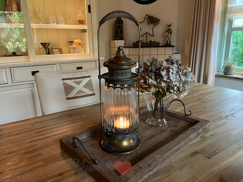 - een brocante windlichthouder,