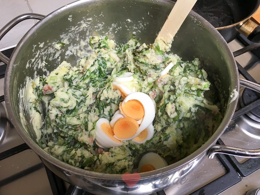 Voor het avondeten maak ik nog een keer andijviestamppot, maar dit keer eten we hem zelf op. Ik bak er ook nog gehaktballetjes bij.