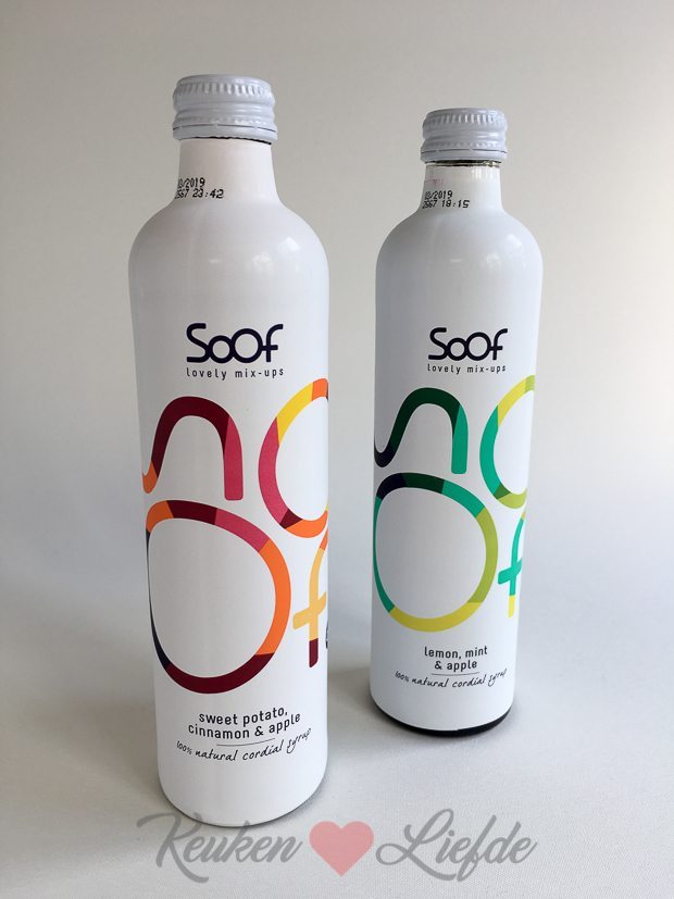 Ik krijg een pakketje thuisbezorgd met daarin twee flessen aanmaaksiroop van Soof. De siropen van Soof zijn honderd procent natuurlijk, bevatten geen conserveermiddelen, kleur- en smaakstoffen en bevatten niks anders dan fruit, groenten en kruiden. Ik krijg de smaken lemon, mint & apple en sweet potato, cinnamon & apple. De lemon, mint en appel heb ik inmiddels al geproefd en goedgekeurd! Het smaakt een beetje als appelsap maar dan lichter en frisser. De andere met zoete aardappel ben ik ook heel benieuwd naar.