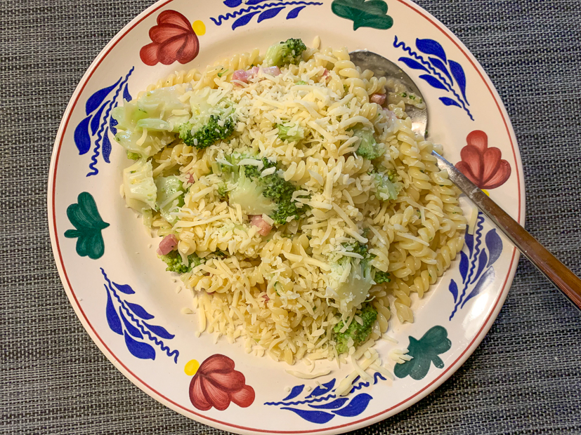 - Pasta met broccoli, spekjes en kaassaus