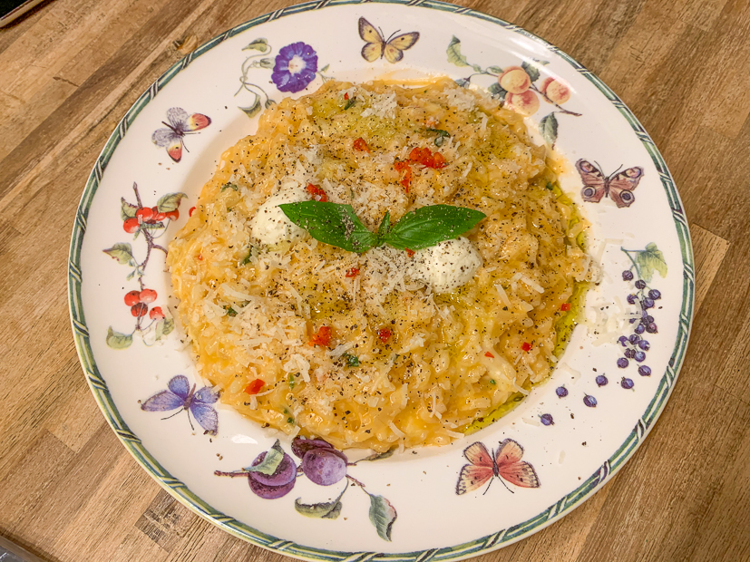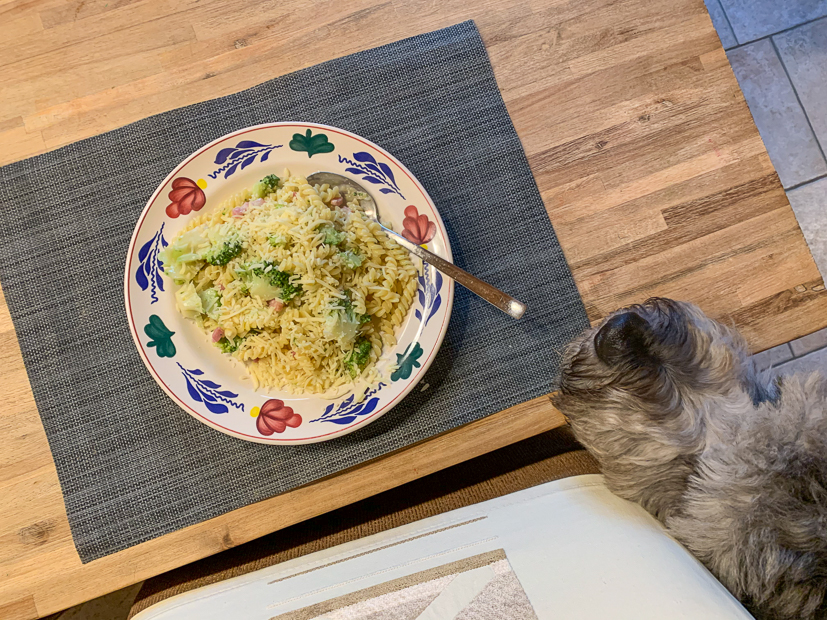 Ik maak tomatenrisotto en broccoli-wortelsoep (dit recept maar met wortel toegevoegd) voor het avondeten. Ella-Marie is niet zo dol op risotto dus die kiest de soep. Johan en ik smullen van de risotto.
