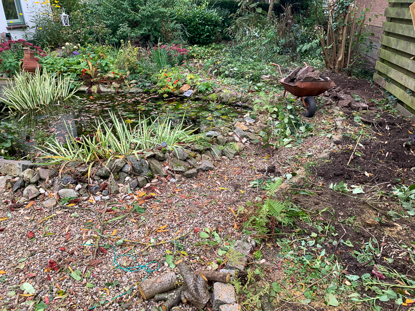 De hele dag zijn we buiten in de tuin te vinden. We gaan binnenkort een taxuxhaag planten, maar eerst moet alle huidige beplanting nog weggehaald worden. Gelukkig komen er ’s middags hulptroepen langs (Johan zijn ouders) om te helpen!