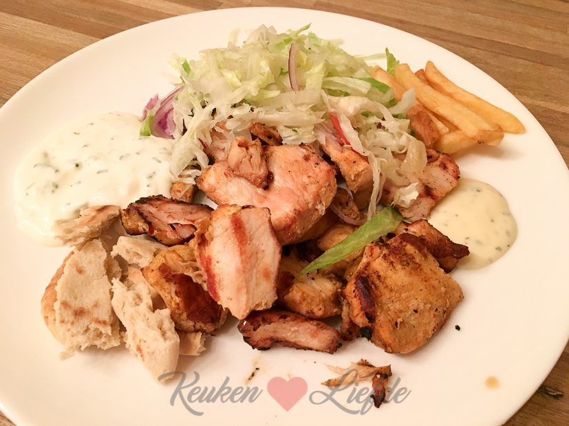 We laten kebab bezorgen voor het avondeten. De zak friet laat ik voor wat het is, ik heb meer dan genoeg aan de kipkebab en salade. We bestellen de kebab altijd bij Golden Kebab in Tiel. Die zijn echt goed! We maken wel altijd zelf onze eigen knoflooksaus om erbij te eten.