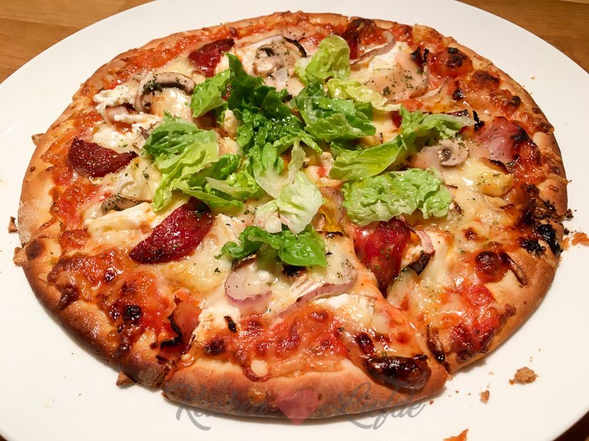 Pizza! Dit keer een kant-en-klare margherita die we extra beleggen. Niet zo lekker als zelfgemaakt, maar nog steeds lekker.