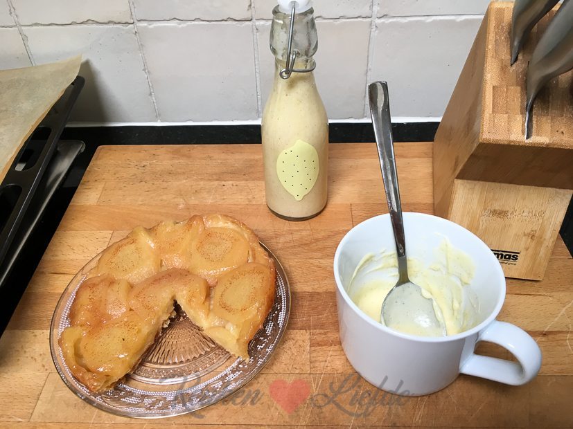 Ik heb een videodag en maak drie nieuwe recepten: vanillesaus (die je zowel warm als koud kunt serveren), tarte tatin en een hartige banketstaaf.
