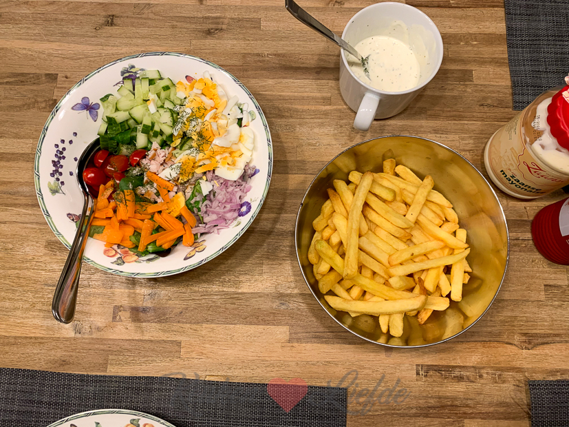 Vandaag houden we een chilldag en doen we helemaal niks. Heerlijk! ’s Avonds maakt Johan een lekkere salade en eten we frietjes en snacks uit de Airfryer.