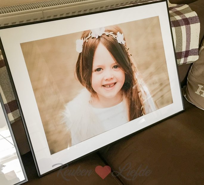 Ik krijg de fotolijst en passe partout binnen die ik heb besteld voor een foto van Ella-Marie. De foto is een tijdje geleden gemaakt door mijn oud-collega Amanda. Amanda is een tijdje geleden voor zichzelf begonnen als professioneel fotografe en ze is zo ongelofelijk getalenteerd! Daarnaast is Amanda nog eens heel creatief, ondernemend en een geweldig leuk mens. Neem maar eens een kijkje op haar facebookpagina, dan snap je direct waarom ik fan van haar ben!