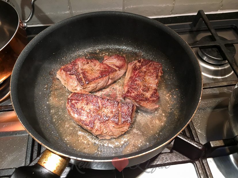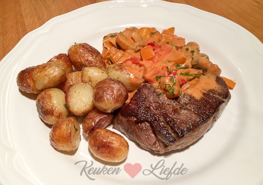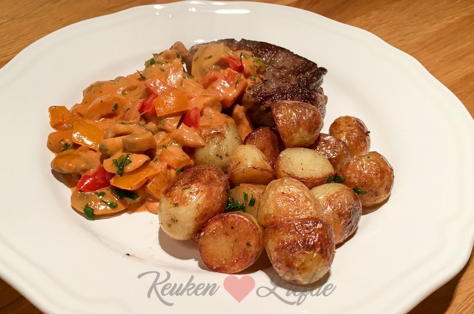 Ik mijn mailbox zie ik een slagersaanbieding binnenkomen van slagerij Augustines in Tiel: 3 biefstukjes voor 7,50 euro. Precies waar ik zin in heb vanavond! Als ik El naar school heb gebracht ga ik ze meteen halen. ’s Avonds eten we gebakken biefstuk en krieltjes in de schil en stroganoffsaus.