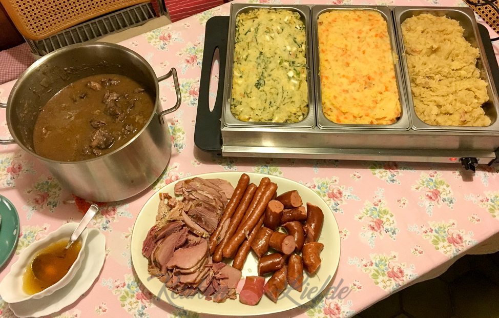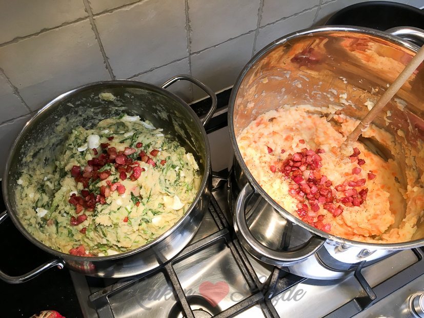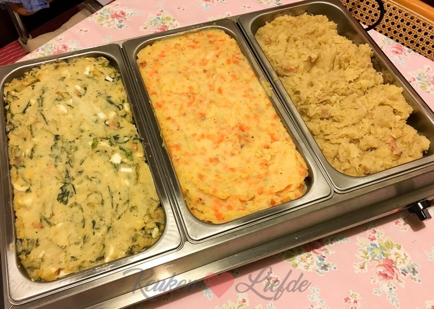 - V.l.n.r. andijviestamppot, hutspot en zuurkoolstamppot