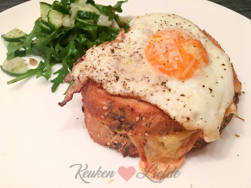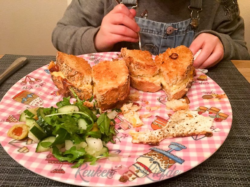 Koken met kliekjes: Johan maakt lekkere dikke tosti’s met een salade en spiegeleitje erbij. Jum! Een tosti met een spiegelei noemen ze in Frankrijk trouwens een croque-madame.