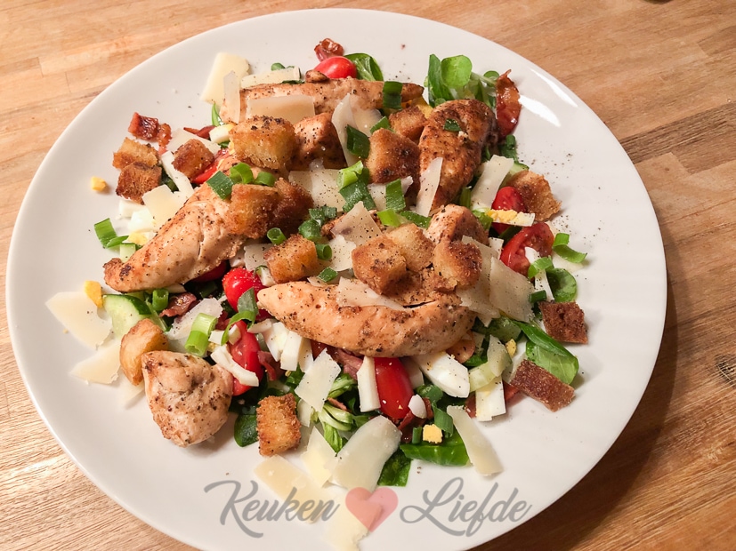 Ik had nog kipfilethaasjes in de koelkast liggen en haal er wat sla bij in de winkel voor een lekkere maaltijdsalade. Zo lekker! Dit kan ik elke dag wel eten.