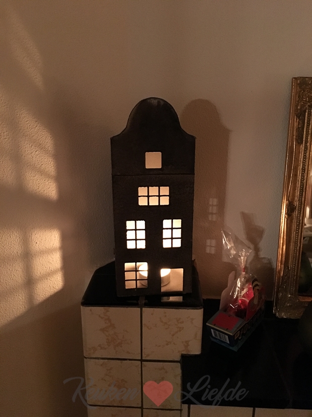 Ik ging natuurlijk ook niet met lege handen naar huis. Dit theelichthuisje was te mooi om te laten staan, kijk hoe gezellig!