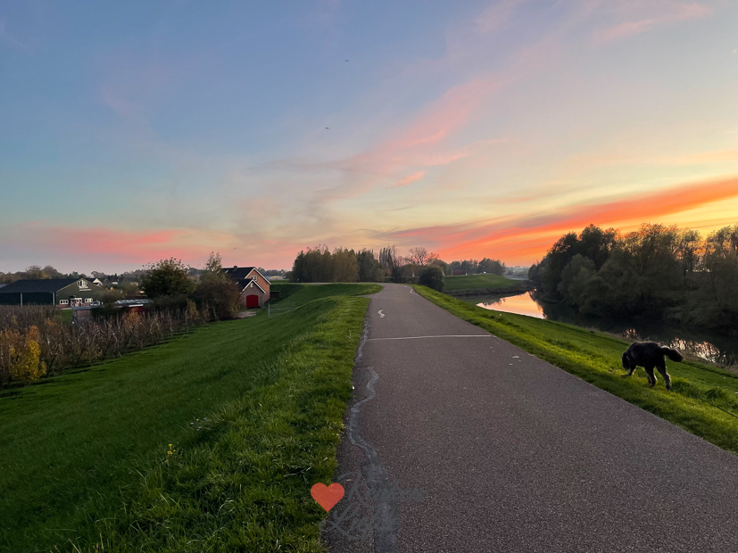 Johan is met Ella mee naar een uitwedstrijd van de voetbal en ondertussen zet ik een artikel online. ’s Middags gaan Johan en ik samen even op pad om kaas te halen en boodschappen te doen. De kaas halen we tegenwoordig bij IJs- en Zuivelboerderij JoLo in ons dorp. In een schuurtje naast de koeienstal staan koelkasten met o.a. zelfgemaakt ijs, verse melk en kaas. Betaling gaat gemakkelijk en snel via een QR-code. Ideaal! Vlak voordat de zon ondergaat maken we een mooie wandeling met Nacho over de dijk. Weer thuis steken we de houtkachel aan en eten we zelfgemaakte pizza.