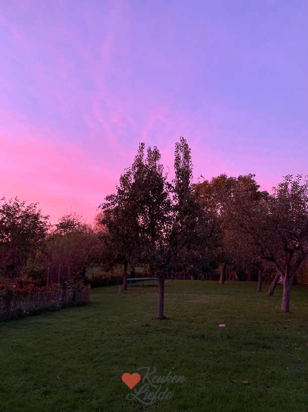Heb jij de avondlucht gezien vrijdagavond? Die was bizar mooi! ’s Avonds gaan we uit eten bij ons in het dorp bij ons favoriete restaurant Aan Tafel bij Jan.