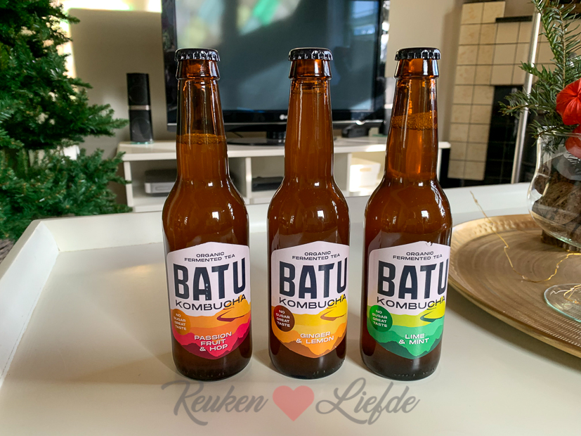 Ook krijgen we een pakketje met drie flesjes BATU Kombucha: een biologische, dubbel gefermenteerde, ongefilterde en suikervrije kombucha. Gemaakt door de bierbrouwers van Gulpener. Ik moest heel erg wennen aan de smaak (zuur!) en denk niet dat ik het snel zelf in de winkel zal kopen. Mijn vader die toevallig langskwam liet ik ook een flesje proeven en die kon het wel waarderen.